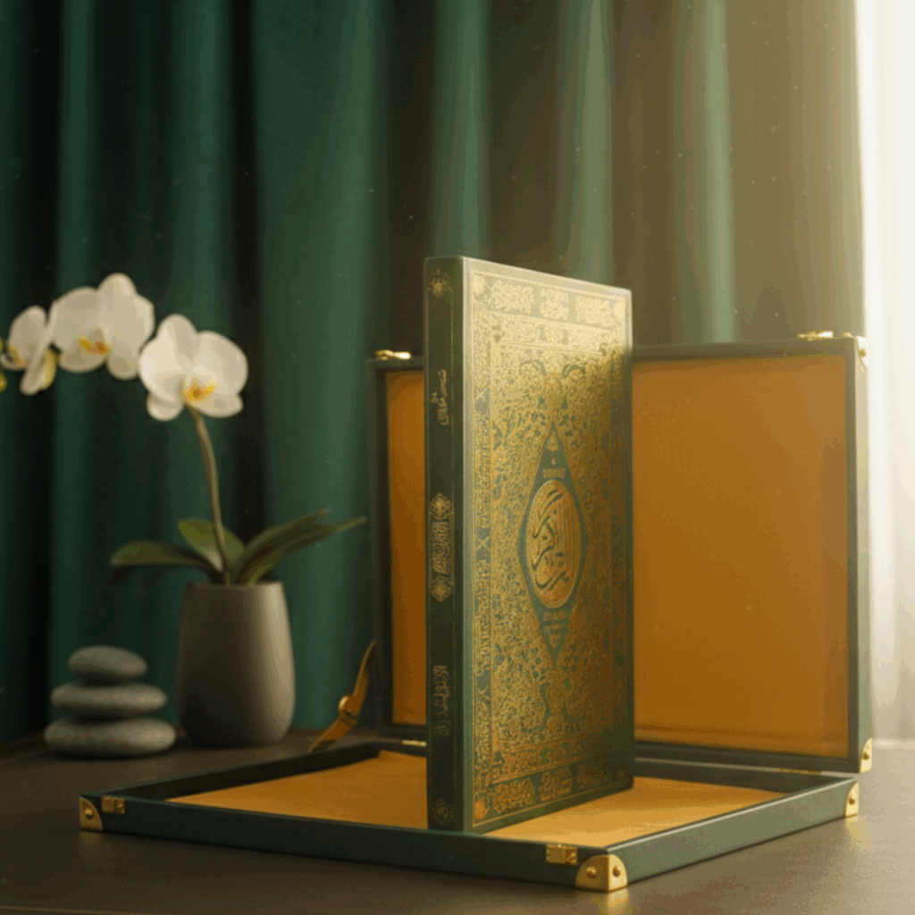 Each Quran comes with a beautifully crafted case — designed to preserve and honor the Holy Book.